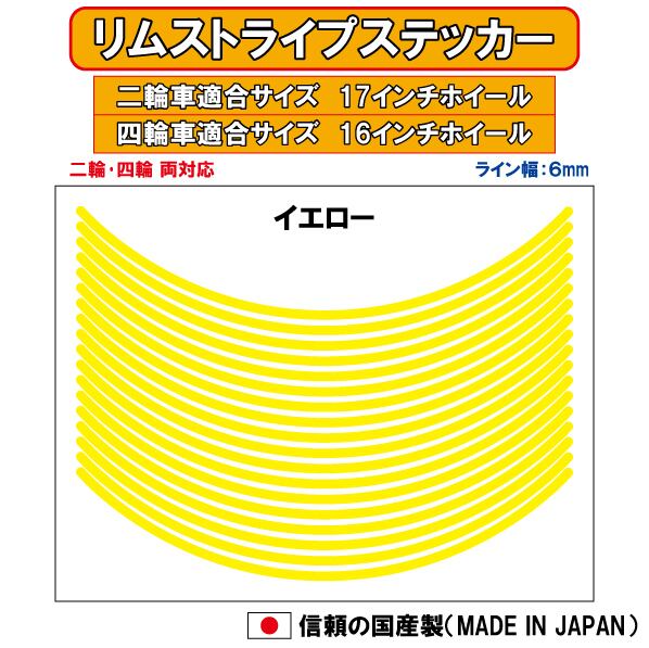 リムストライプステッカー イエロー 6mm幅 16インチ・17インチ用
