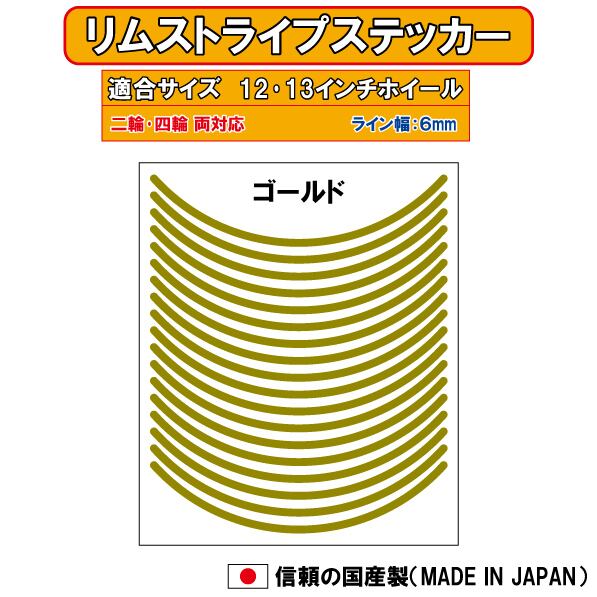 リムステッカー 6mm ゴールド 12インチ・13インチ用 原付